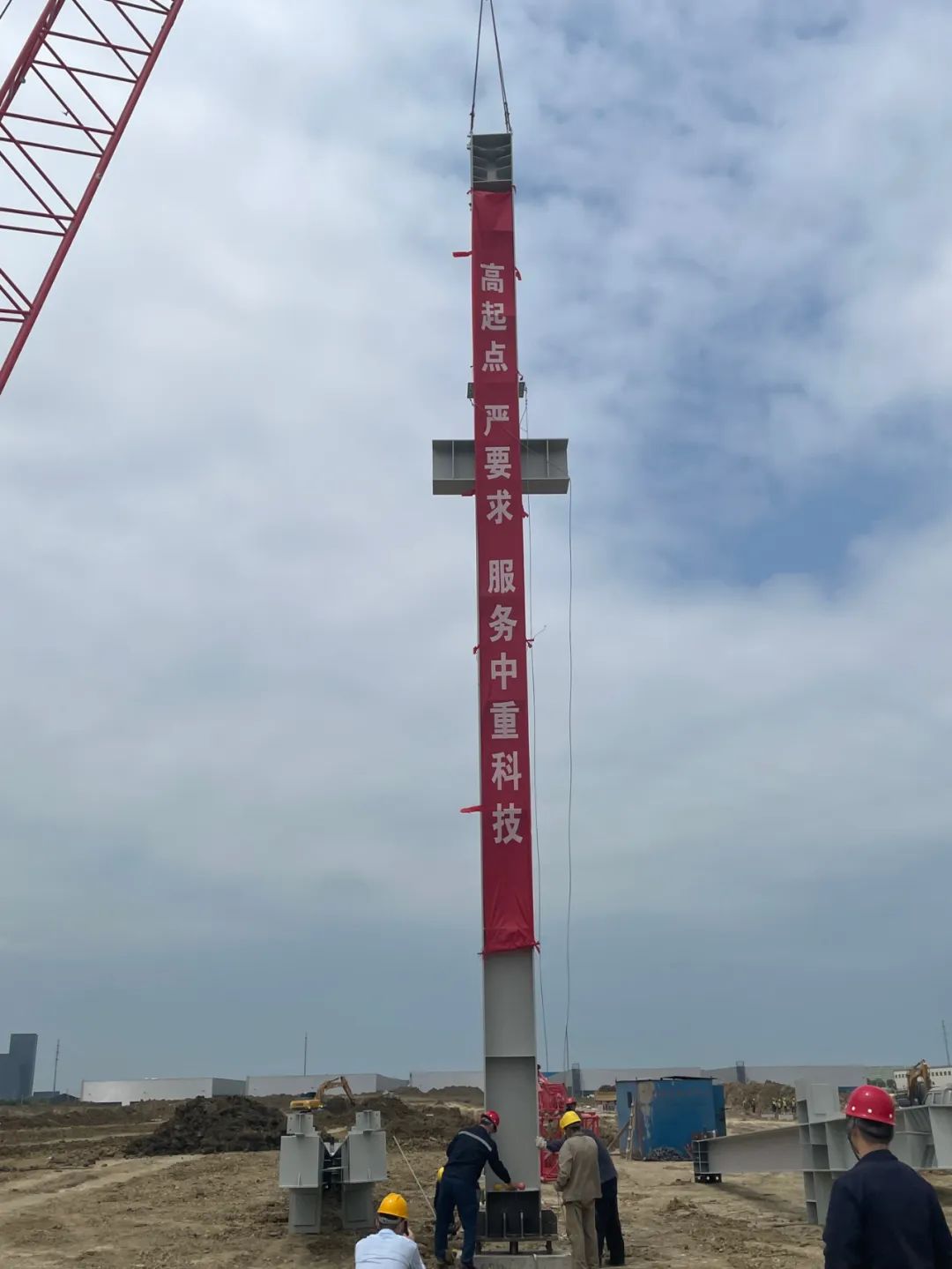 近日,由淮安市揚(yáng)子鋼結(jié)構(gòu)工程有限公司(以下簡稱“揚(yáng)子鋼構(gòu)”)所承接的中重科技(江蘇)有限公司一期鋼結(jié)構(gòu)廠房項(xiàng)目首吊成功!首根鋼柱緩慢吊起、平穩(wěn)就位,意味著該項(xiàng)目正式全面進(jìn)入鋼結(jié)構(gòu)主體施工階段。