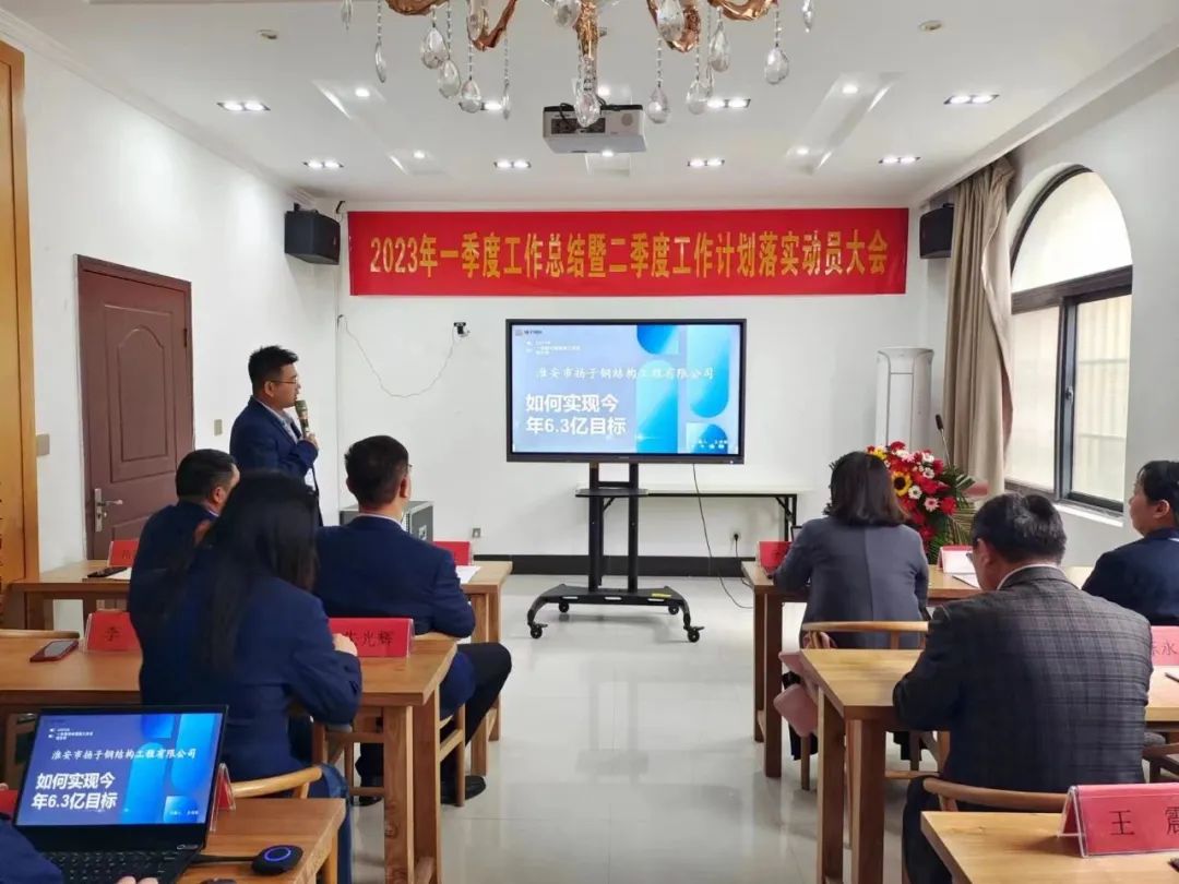 4月22日,淮安市揚子鋼結構工程有限公司(以下簡稱“揚子鋼構”)2023年第一季度工作總結暨第二季度工作計劃落實動員大會順利召開。